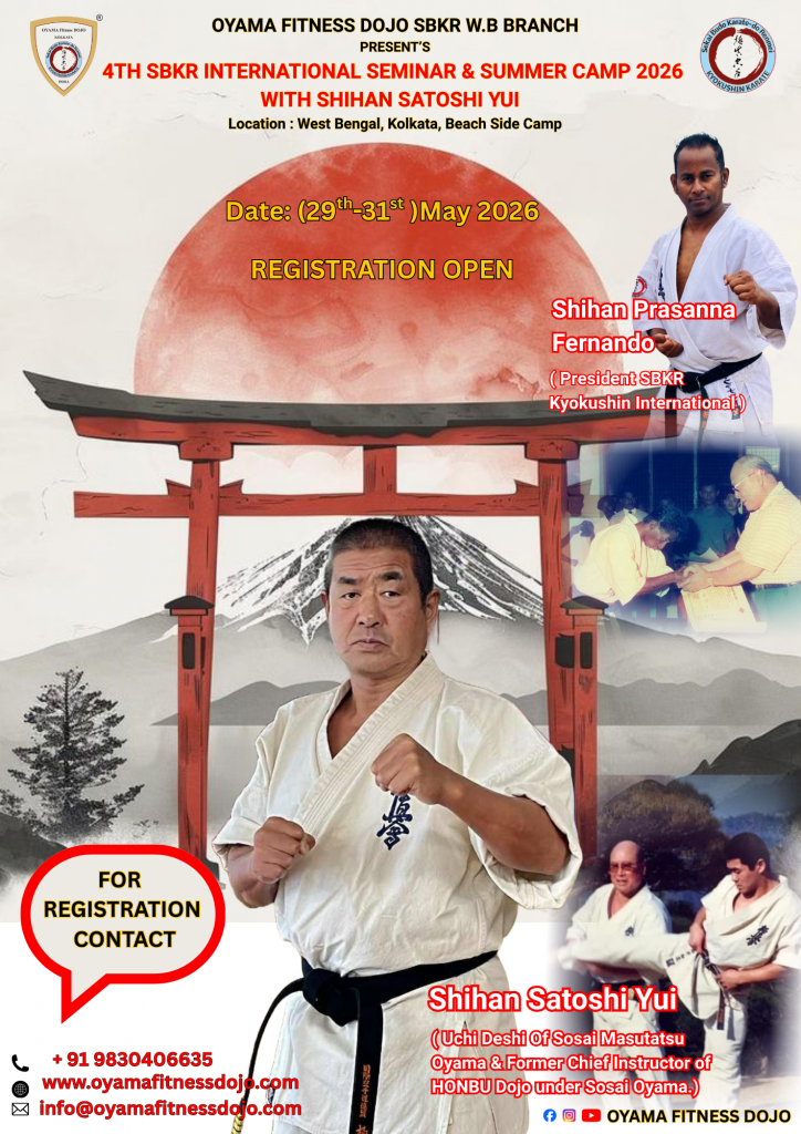 This prestigious event is organised by Oyama Fitness Dojo, Sekai Budo Karate Do Renmei Kyokushin Karate International – West Bengal, India Branch, and supported by Oyama Fitness Association. The seminar aims to promote technical excellence, discipline, unity, cultural exchange, and the true Spirit of OSU under the direct guidance of Shihan Satoshi Yui.